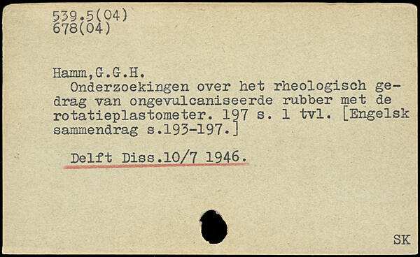 Onderzoekingen over het rheologisch gedrag van ongevulcaniseerde rubber met de rotatieplastometer.