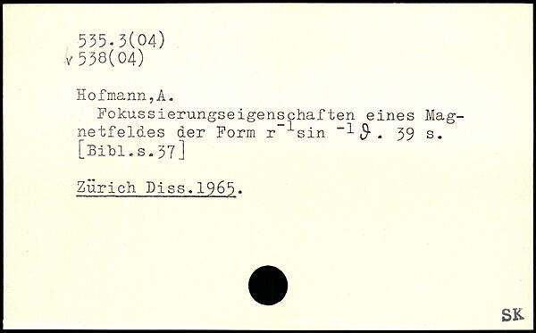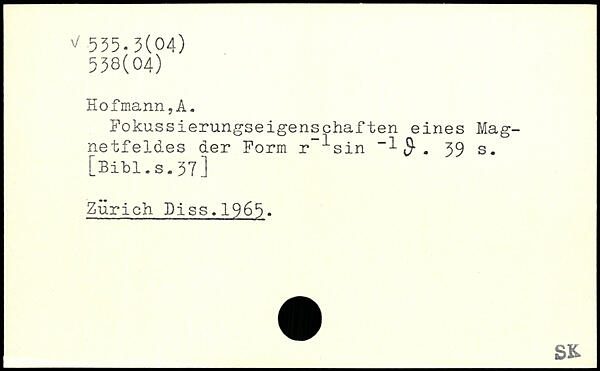 Fokussierungseigenschaften eines Magnetfeldes der Form r~^sin "1 $.