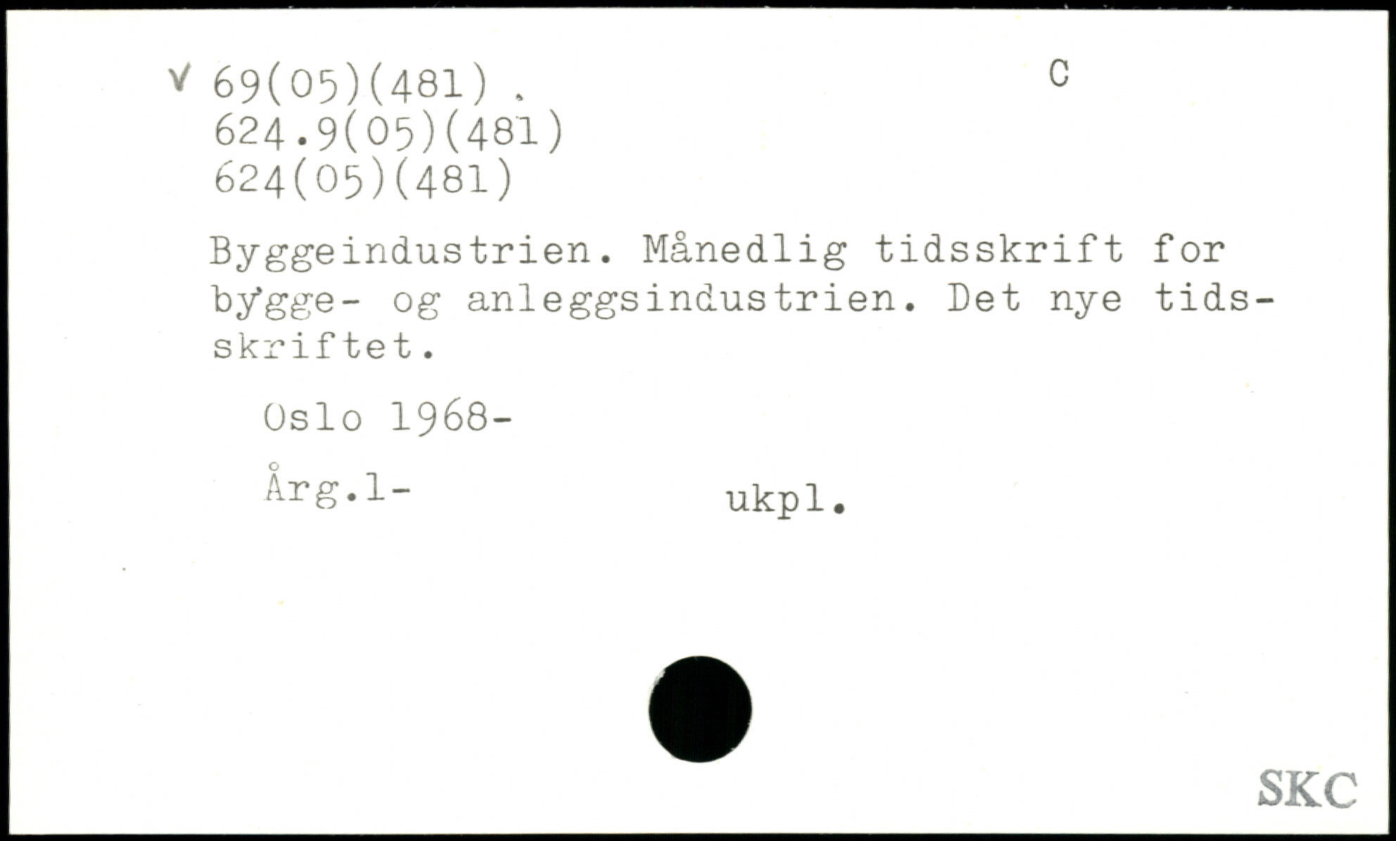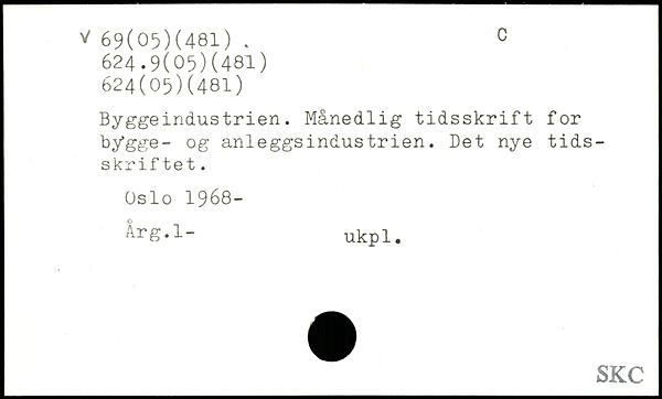 Byggeindustrien. Månedlig tidsskrift for bygge- og anleggsindustrien. Det nye tids-skrif tet. Oslo 1968- Årg-1- ukpl.
