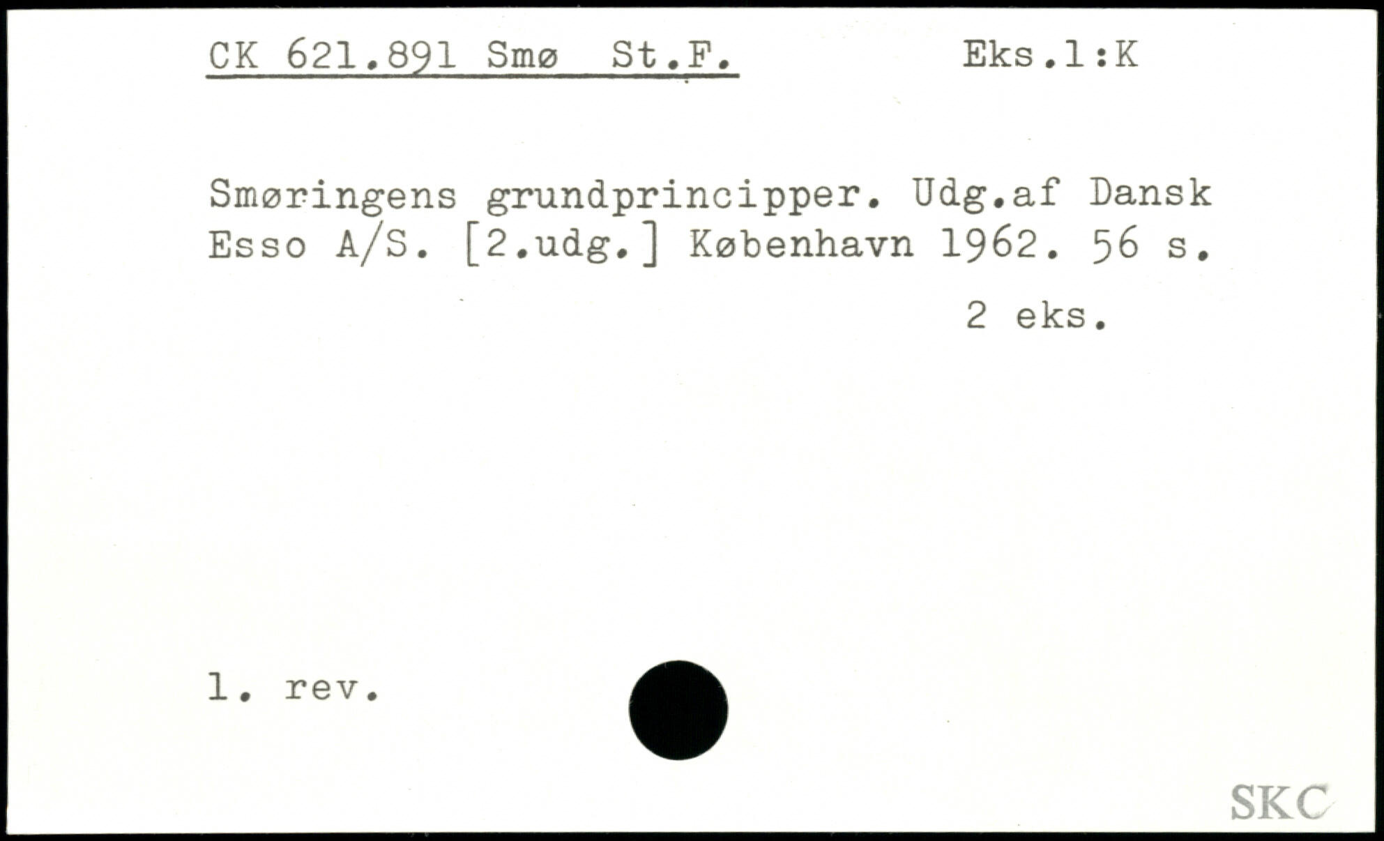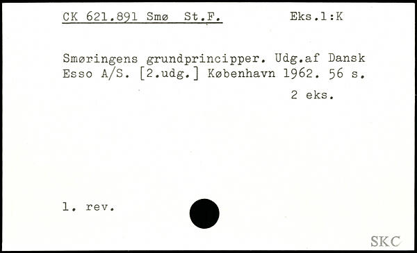 Smøringens grundprincipper. Udg.af Dansk Esso A/S. [