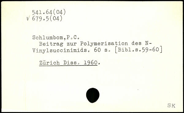 Schlumbom,Po C, Beitrag zur Polymerisation des N~ Vinylsuccinimids0