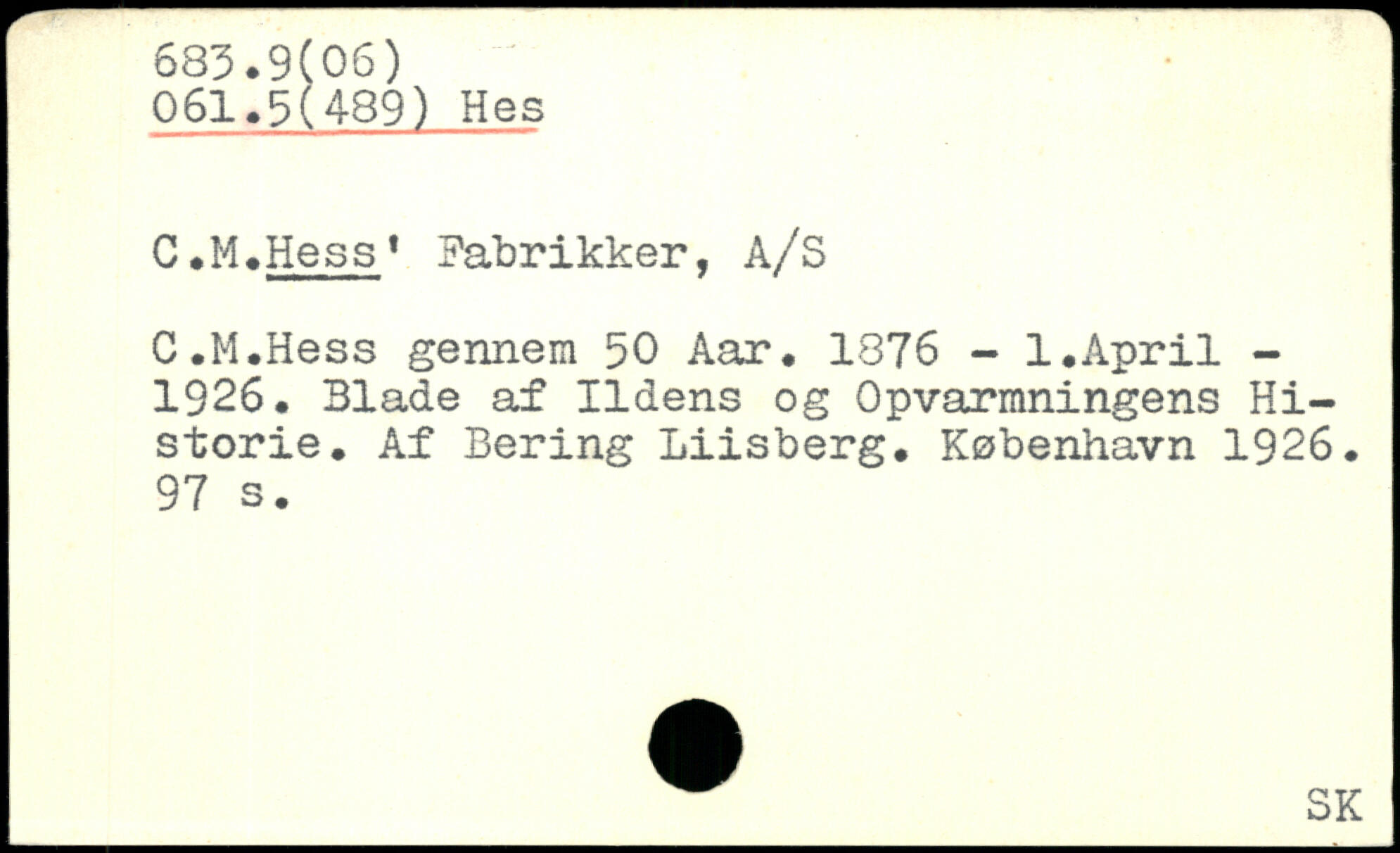 C.M.Hess 1 Fabrikker, A/S C.M.Hess gennem 50 Aar. 1876 - 1.April -1926. Blade af Ildens og Opvarmningens Historie. Af Bering Liisberg.