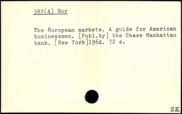 The European markets. A guide for American businessmen.