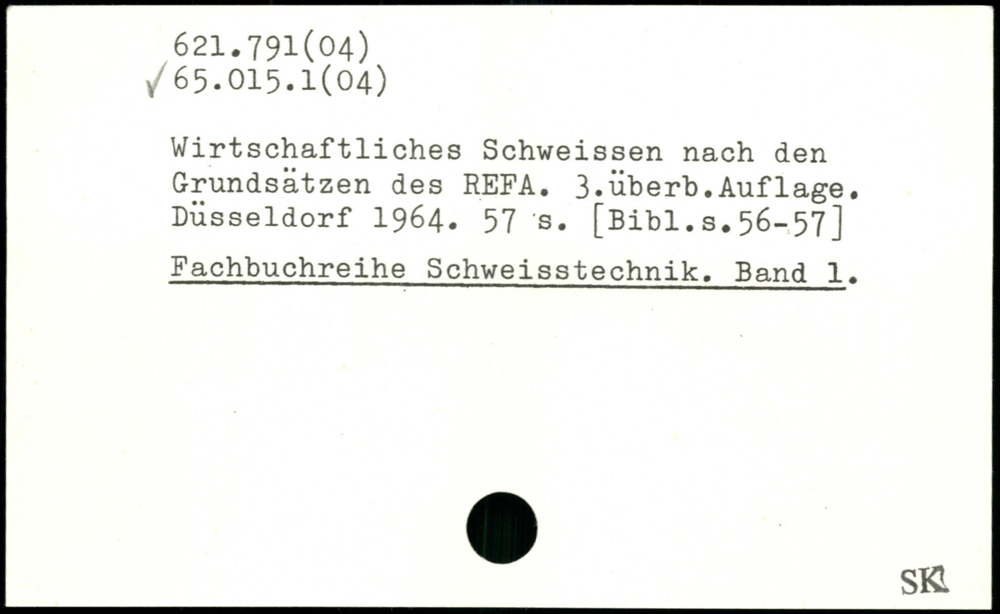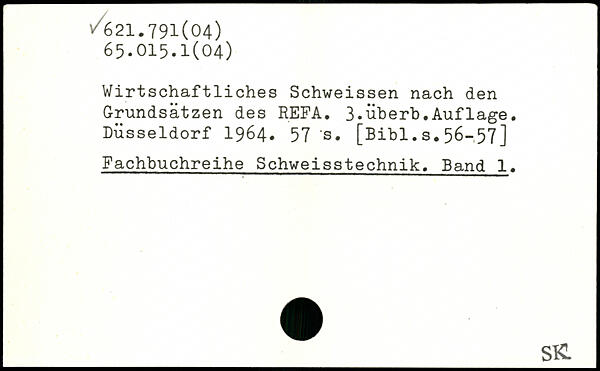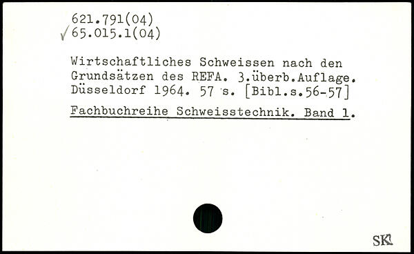 Wirtschaftliches Schweissen nach den Grundsätzen des REFA. 3.überb.Aufläge. Düsseldorf 1964. 57 's.