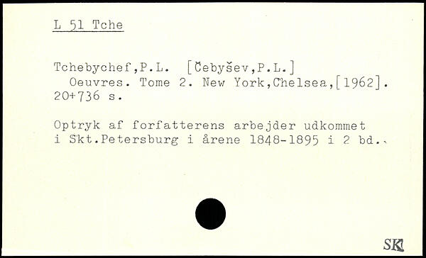 Tchebychef,P.L. [Cebysev,P.L.] Oeuvres. Tome 2. Nev/ York, Chelsea, [ 1962].