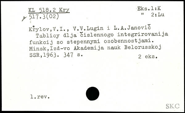 Tablicy dl ja cislennogo integrirovanija funkcij so stepennymi osobennostjami. Minsk,Izd-vo Akademija nauk Belorusskoj SSR,1963.
