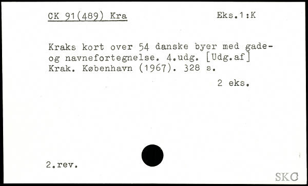 Kraks kort over 54 danske byer med gade-og navnefortegnelse.