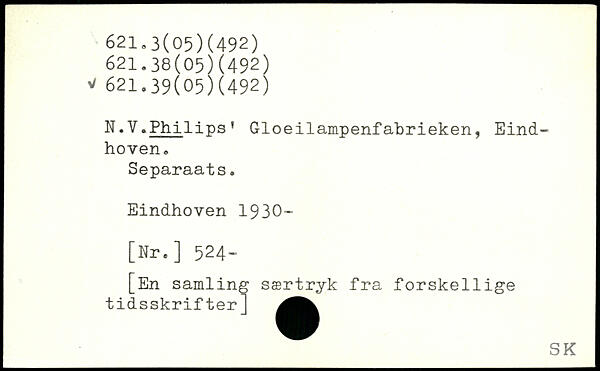 N,V.Philips 1 Gloeilampenfabrieken, Eindhoven. Separaats. Eindhoven 1930- [Hr.] 524-
