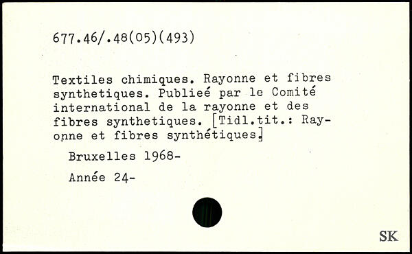 Textiles chimiques. Rayonne et fibres synthétiques. Publiée par le Comité international de la rayonne et des fibres synthétiques. [Tidl.tit.ï Rayonne et fibres synthétiquesj