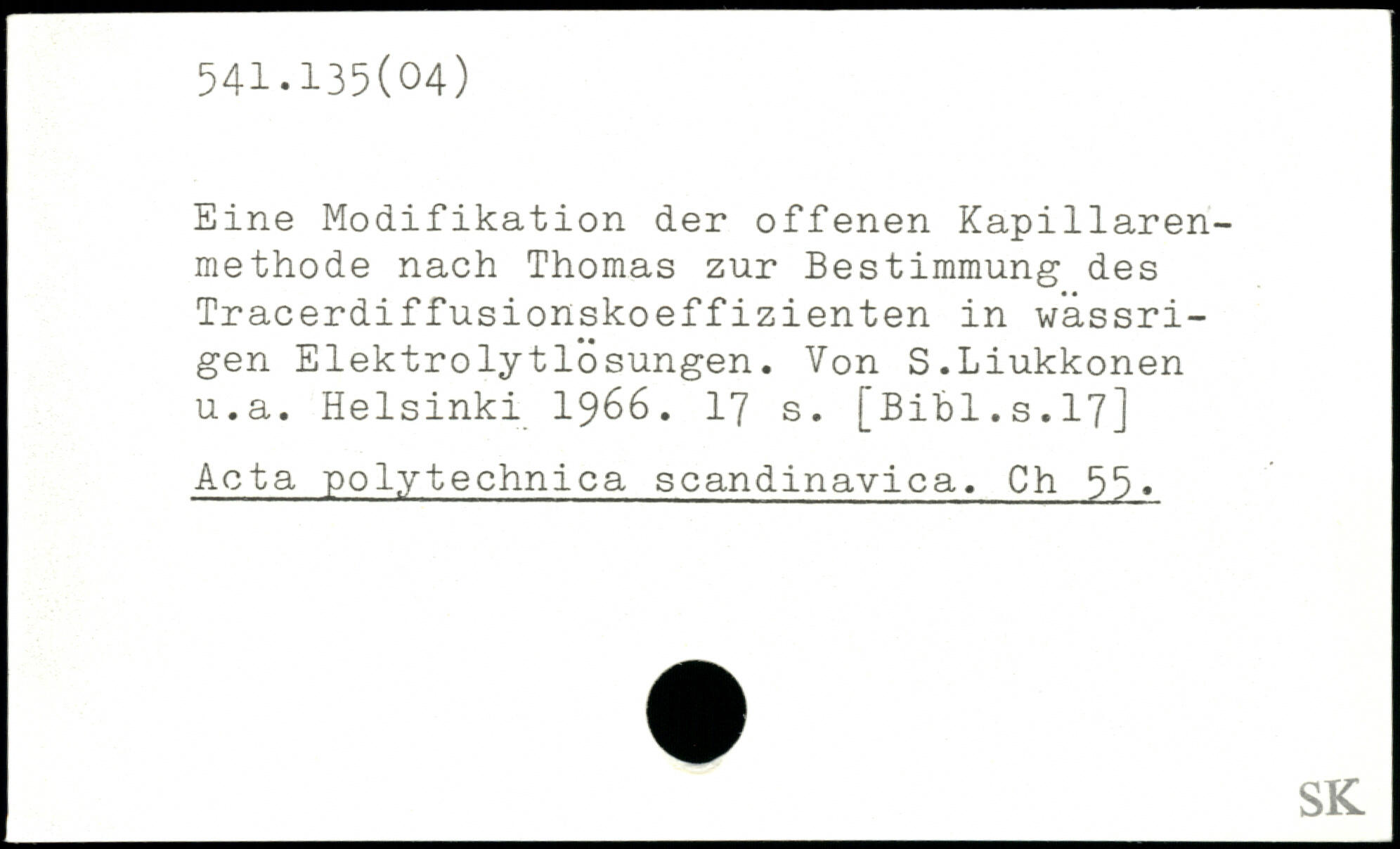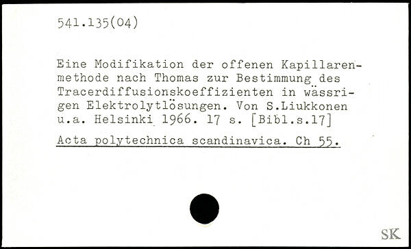 Eine Modifikation der offenen Kapillarenmethode nach Thomas zur Bestimmung des Tracerdiffusionskoeffizienten in wässrigen Elektrolytlösungen. Von S.Liukkonen u.a.
