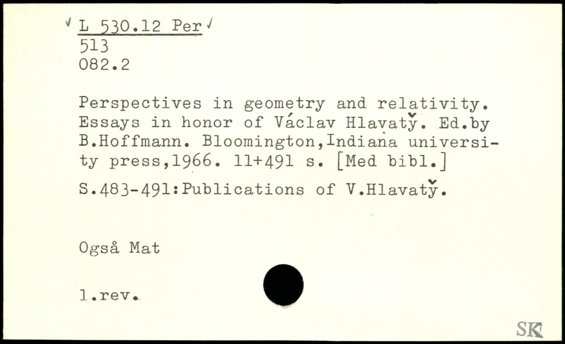 Perspectives in geometry and relativity. Essays in honor of Vaclav Hlavaty. Ed.by B.Hoffmann.
