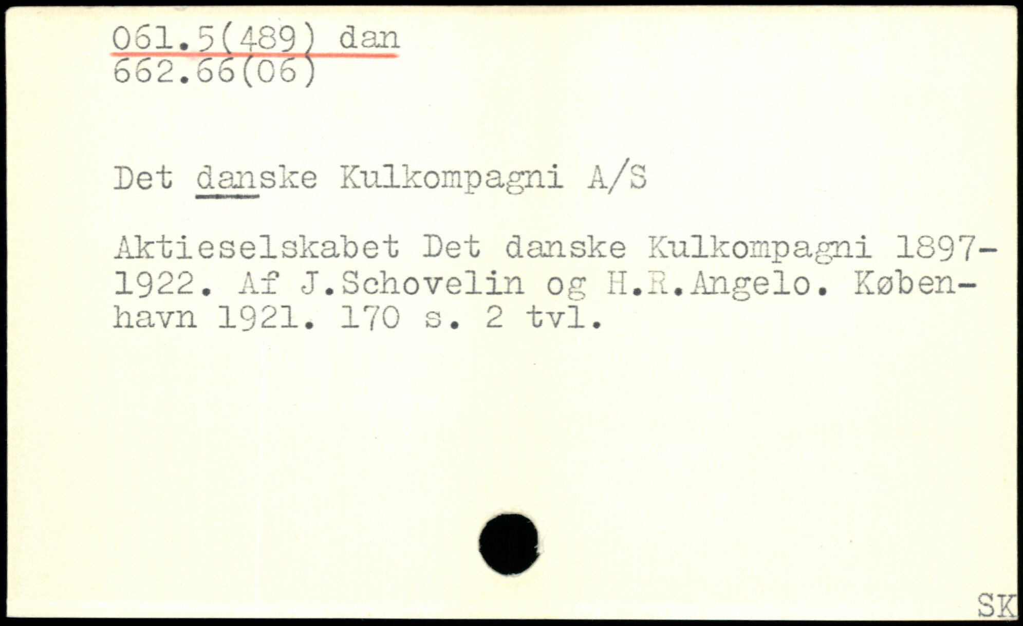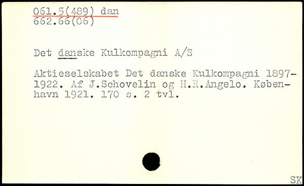 let danske Kulkompagni A/S Aktieselskabet Det danske Kulkompagni 1897-1922. Af J.Schovelin og II.ii.Angelo.