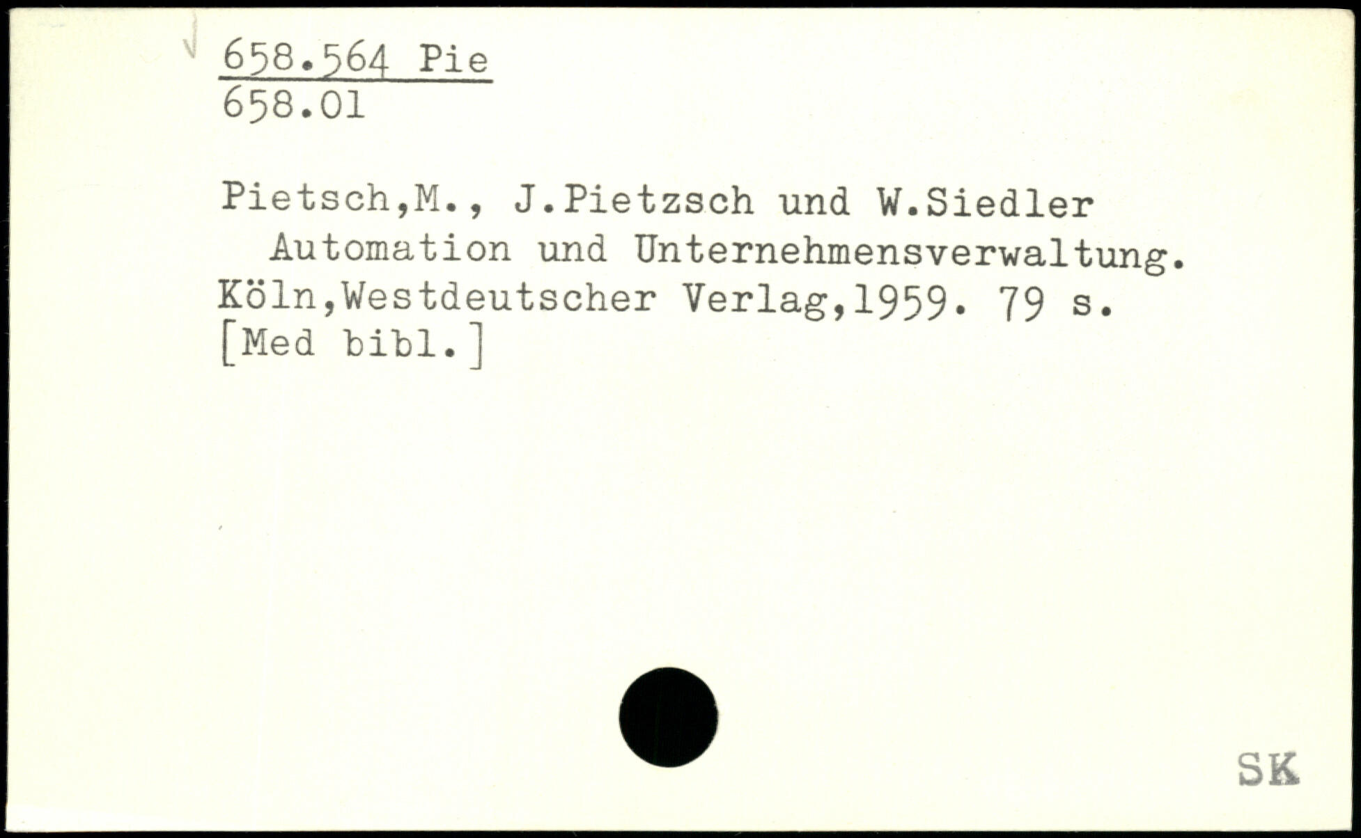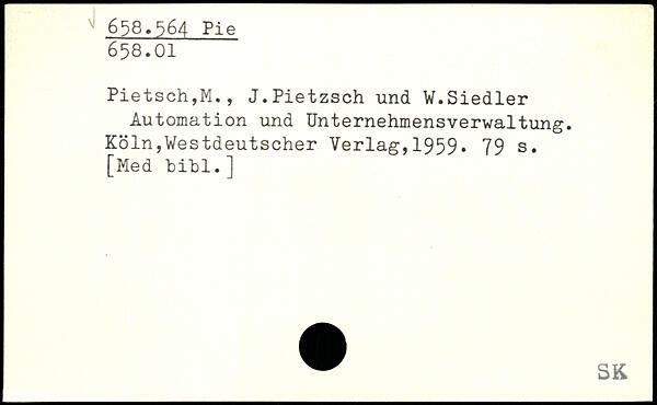 Pietsch,M., J.Pietzsch und W.Siedler Automation und Unternehmensverwaltung.