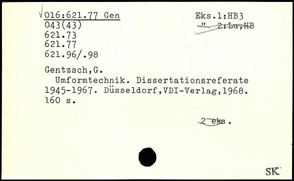 Umformtechnik. Dissertationsreferate 1945-1967.