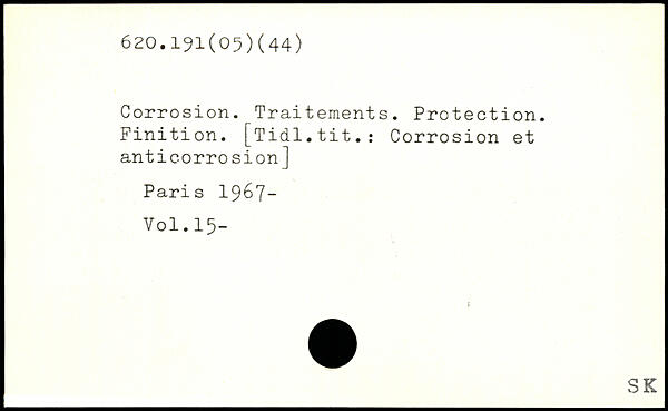 Corrosion. Traitements. Protection. Finition. [Tidl.tit.: Corrosion et anticorrosion]