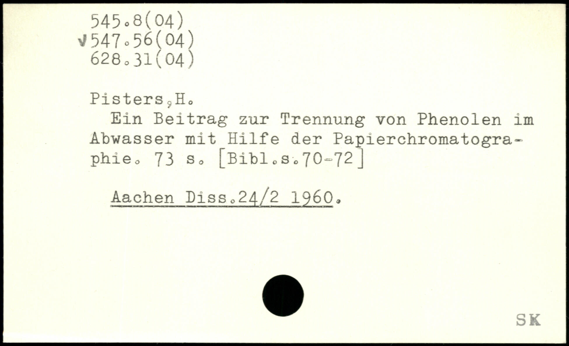 Ein Beitrag zur Trennung von Phenolen im Abwasser mit Hilfe der Papierchromatographie ,
