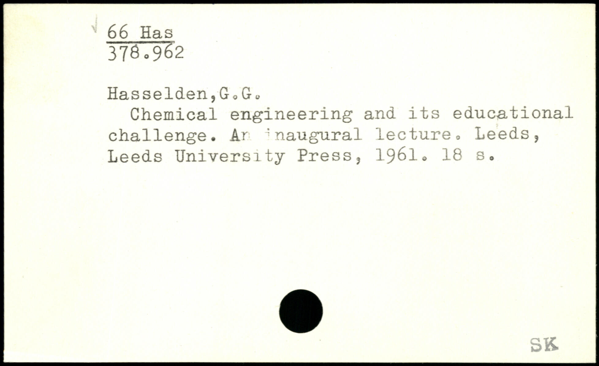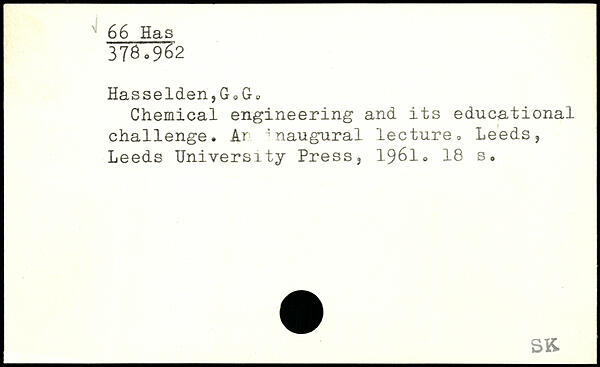 Hasselden,GoGu Chemical engineering and its educational challenge. Ar inaugural lecture.