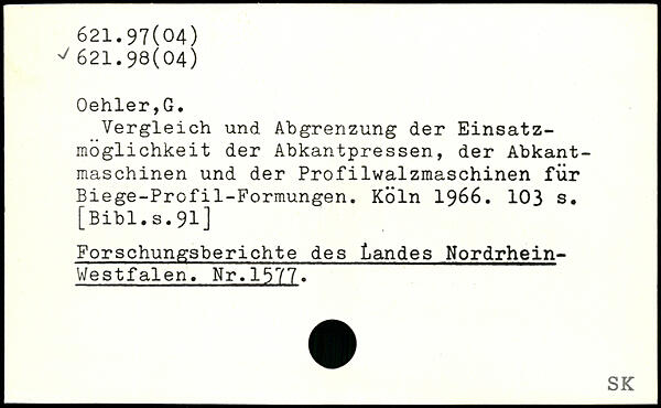 Vergleich und Abgrenzung der Einsatz-moglichkeit der Abkantpressen, der Abkantmaschinen und der Profilwalzmaschinen für Biege-Profil-Formungen.
