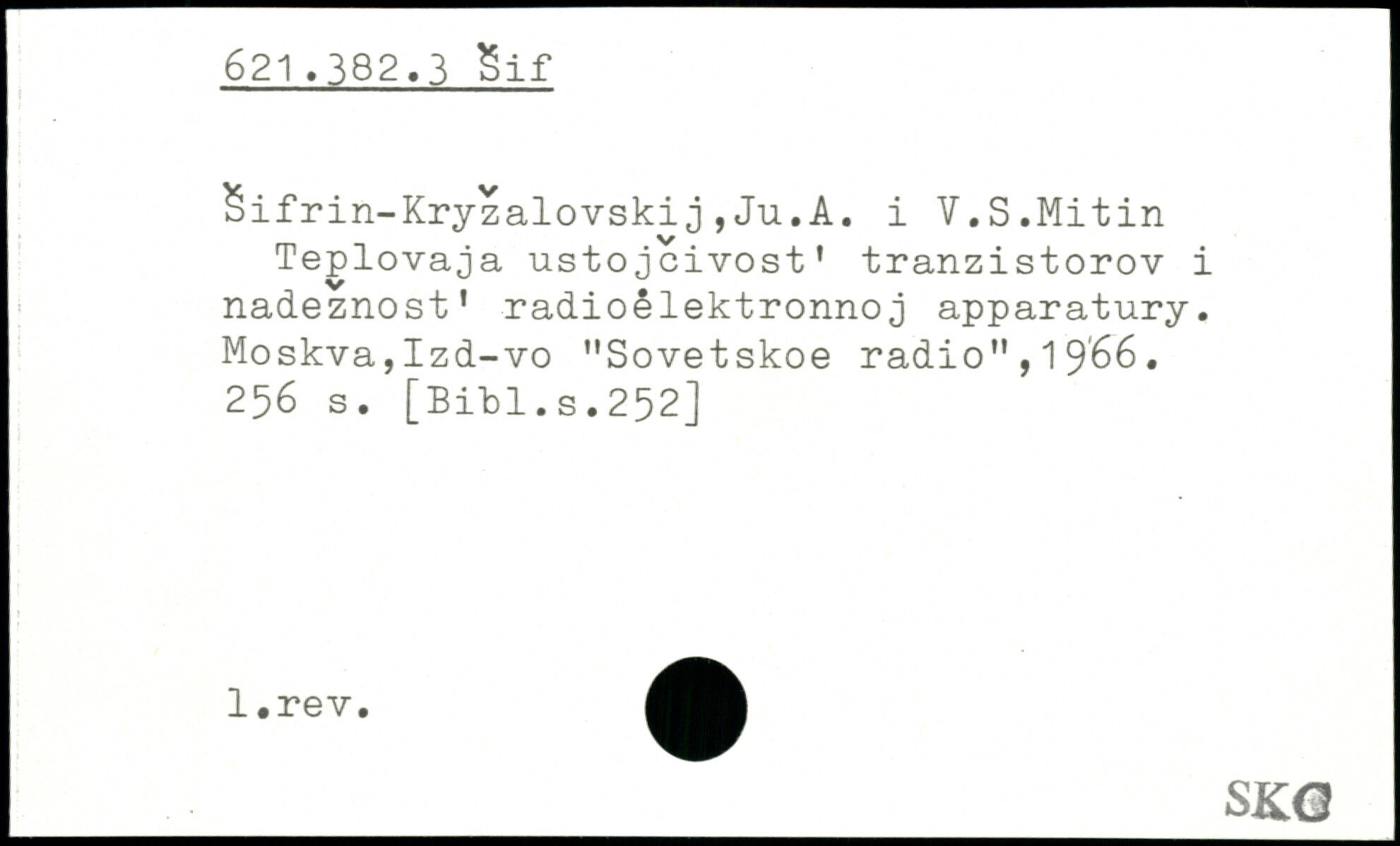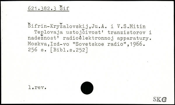 Sifrin-Kryzalovskij,Ju.A. i Y.S.Mitin Teplovaja ustojcivost. tranzistorov i nadeznost1 radioélektronnoj apparatury. Moskva,Izd-vo "Sovetskoe radio",1966.