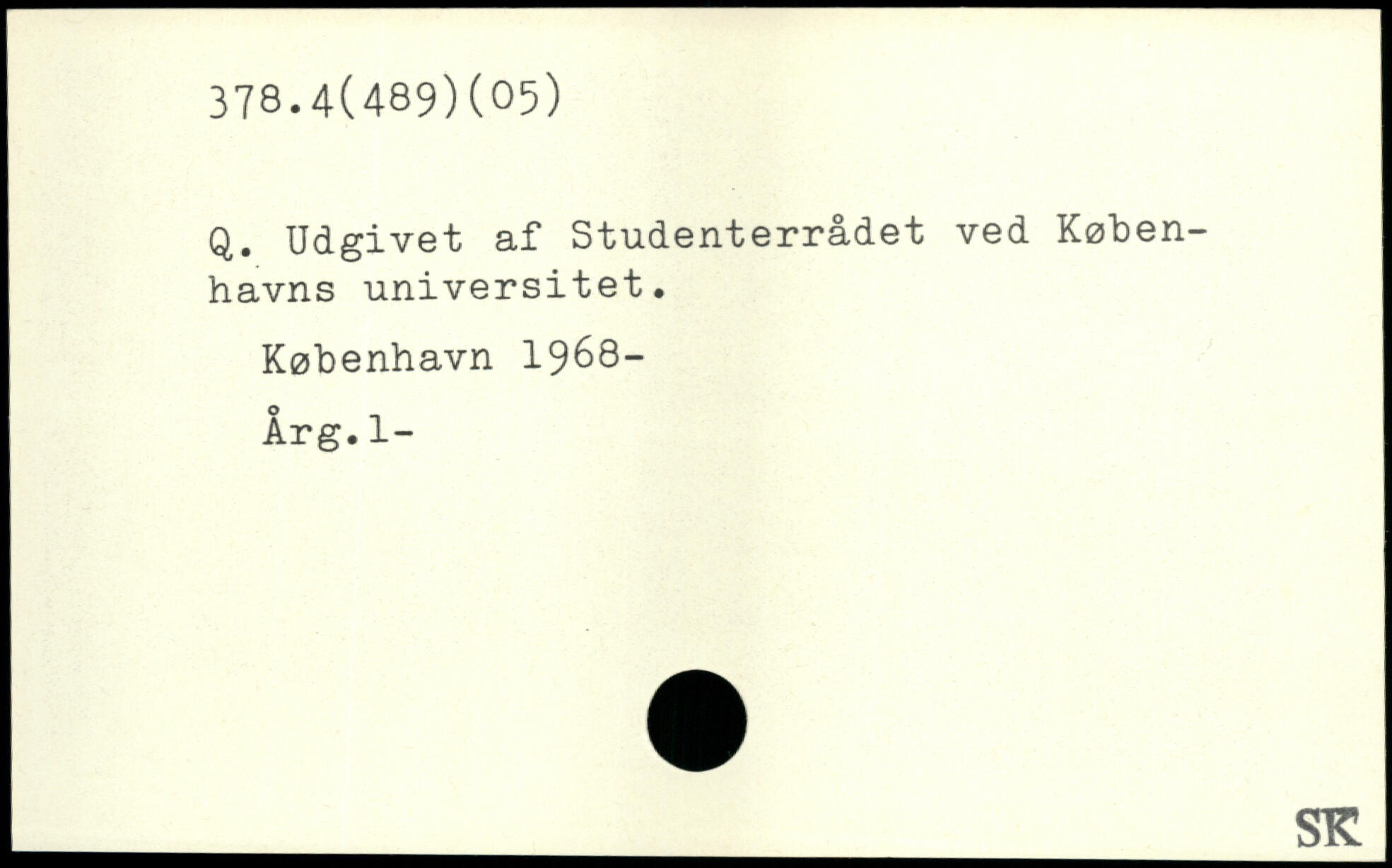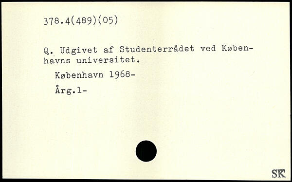 q. Udgivet af Studenterrådet ved Københavns universitet.