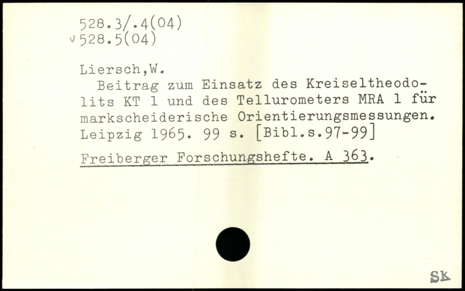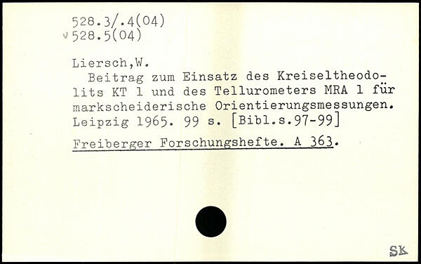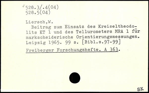 Beitrag zum Einsatz des Kreiseltheodolits KT 1 und des Tellurometers MRA 1 für markscheiderische Orientierungsmessungen.