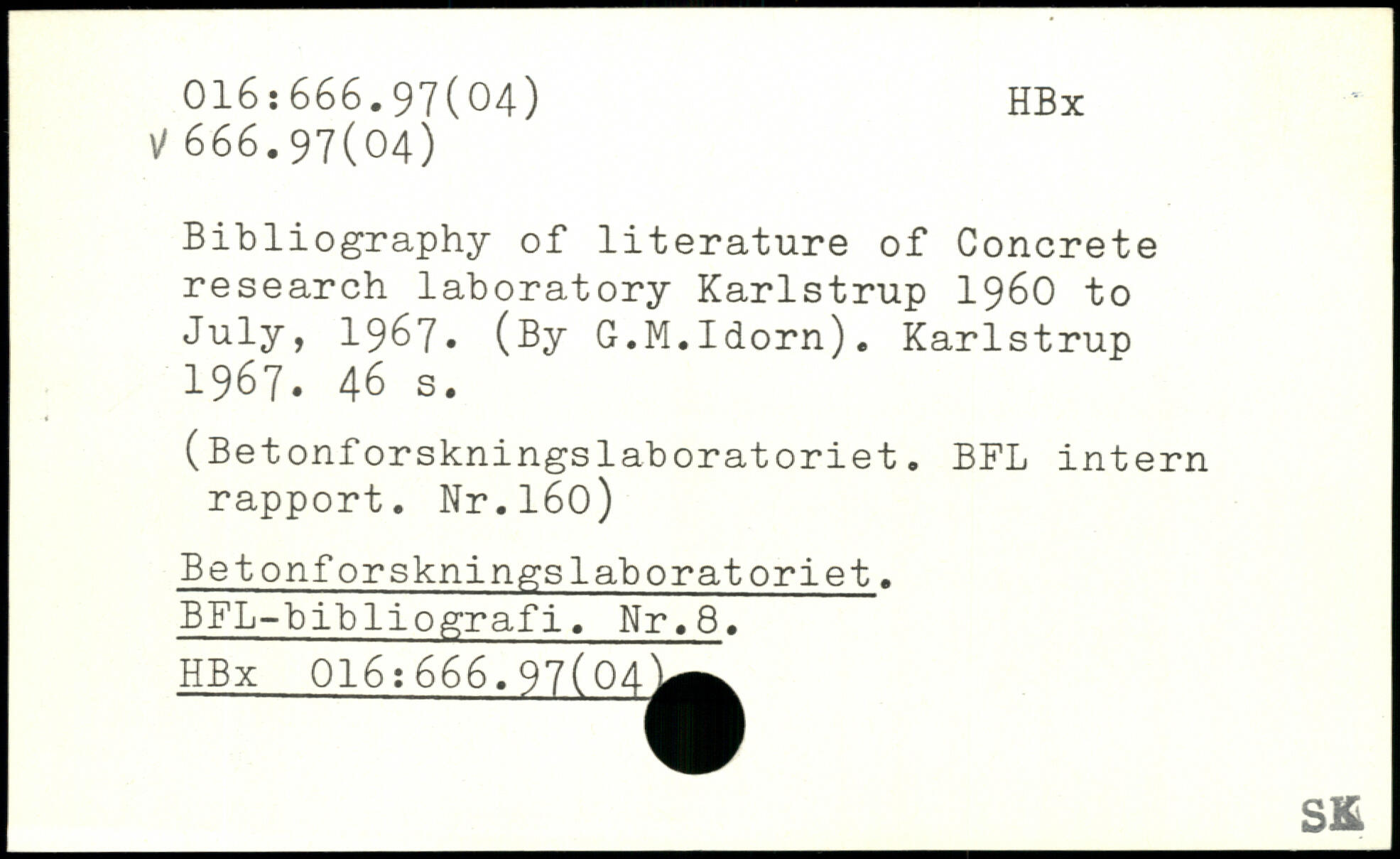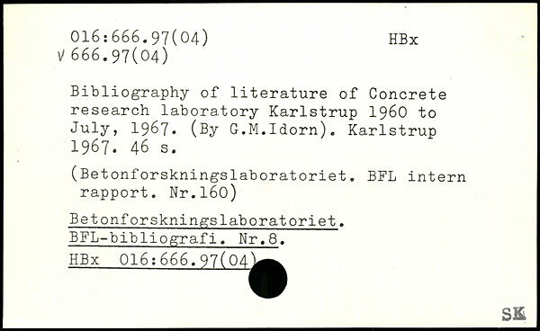 Bibliography of literature of Concrete research laboratory Karlstrup 1960 to July, 1967, (By G.M.Idorn). Karlstrup 1967.