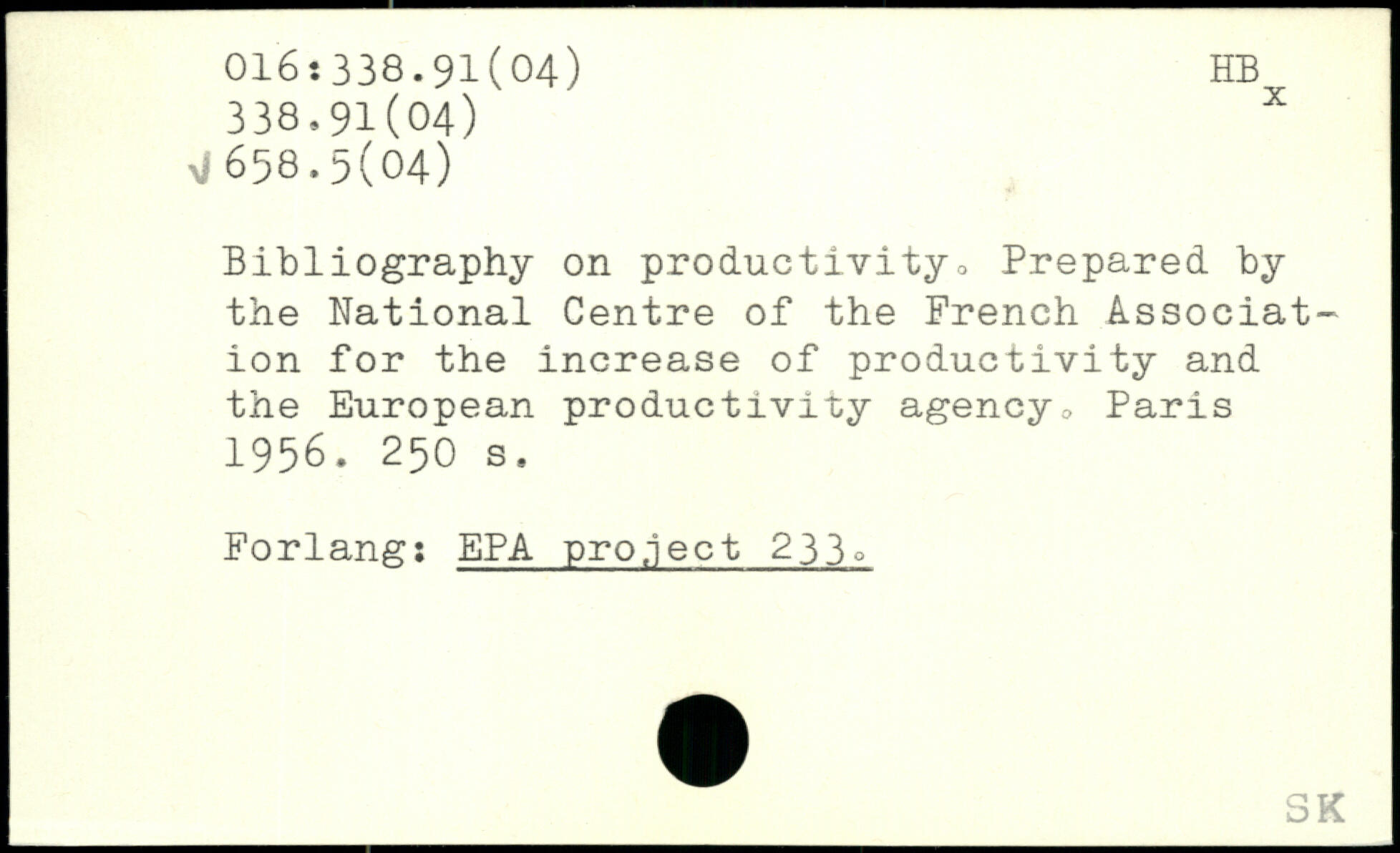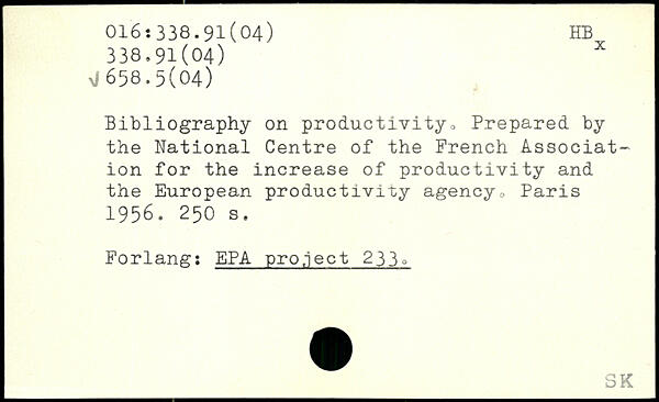 Bibliography on productivity., Prepared by the National Centre of the French Association for the increase of productivity and the European productivity agency