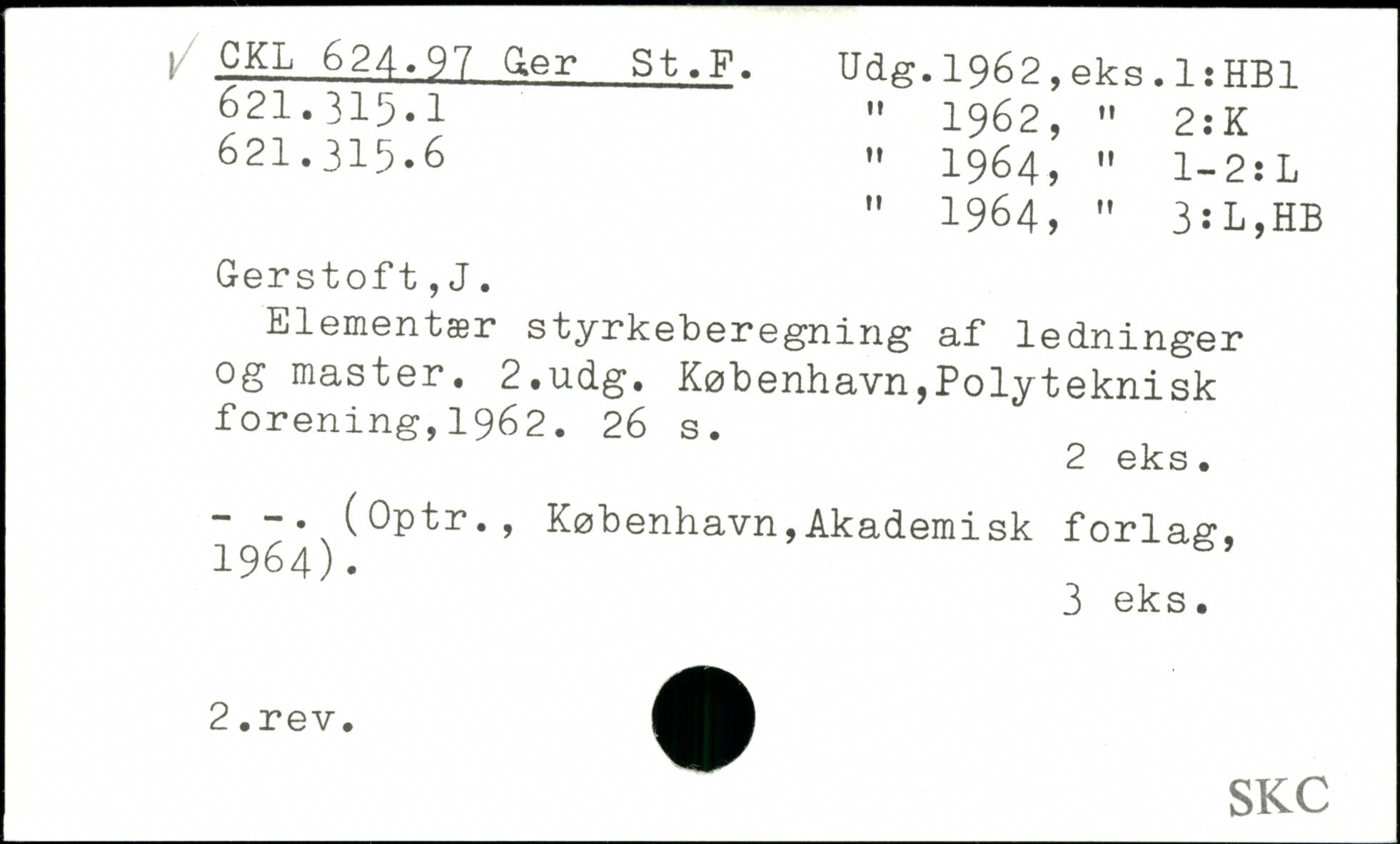 " 1964, " 3:L,HB Gerstoft,J. Elementær styrkeberegning af ledninger og master.