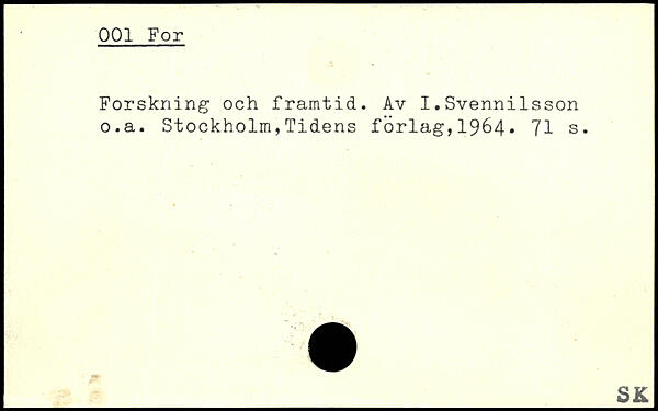 Forskning och framtid. Av I.Svennilsson o.a.