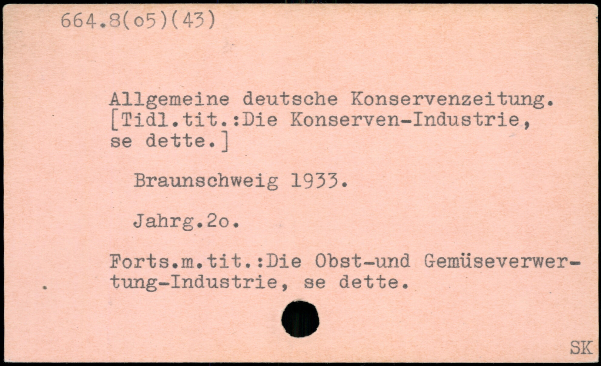 Allgemeine deutsche Konservenzeitung, [Tidl.tit.:Die Konserven-Industrie, se dette.] Braunschweig 1933. Jahrg.2o, Forts.m.tit.:Die Obst-und Gemüseverwertung-Industrie , se dette.