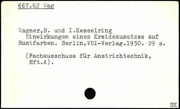 Einwirkungen eines Kreidezusatzes auf Buntfärben. Berlin,VDI-Verlag.1930.