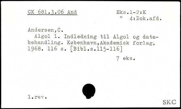 Algol 1. Indledning til Algol og databehandling. København,Akademisk forla.g, 1968.