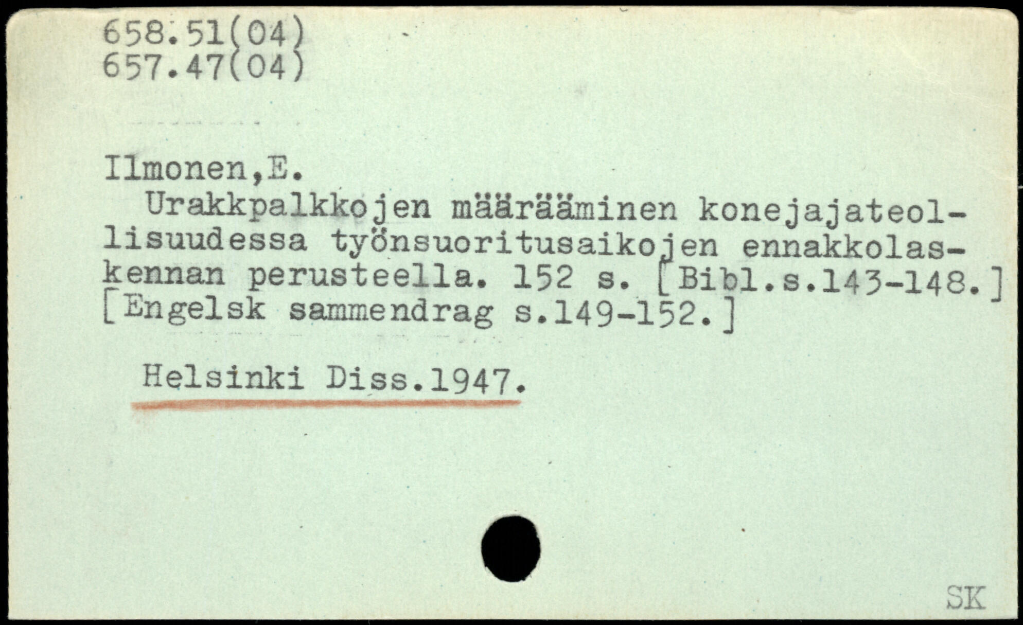 Urakkpalkkopen määrääminen konejajateol-lisuudessa tybnsuoritusaikojen ennakkolas-kennan perusteella.