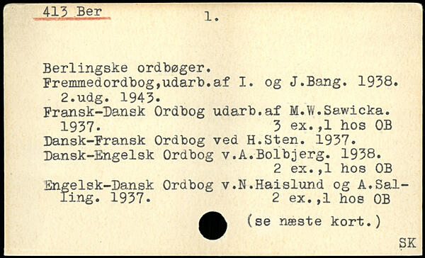 Berlingske ordbøger. Fremmedordbog,udarb.af I. og J.Bang. 1938.