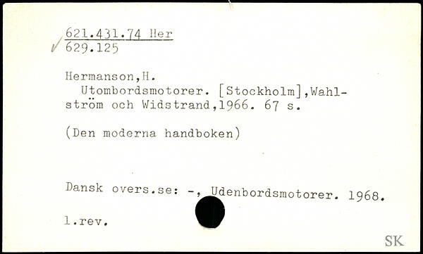 Utombordsmotorer. [Stockholm],Wahlström och Widstrand,1966.