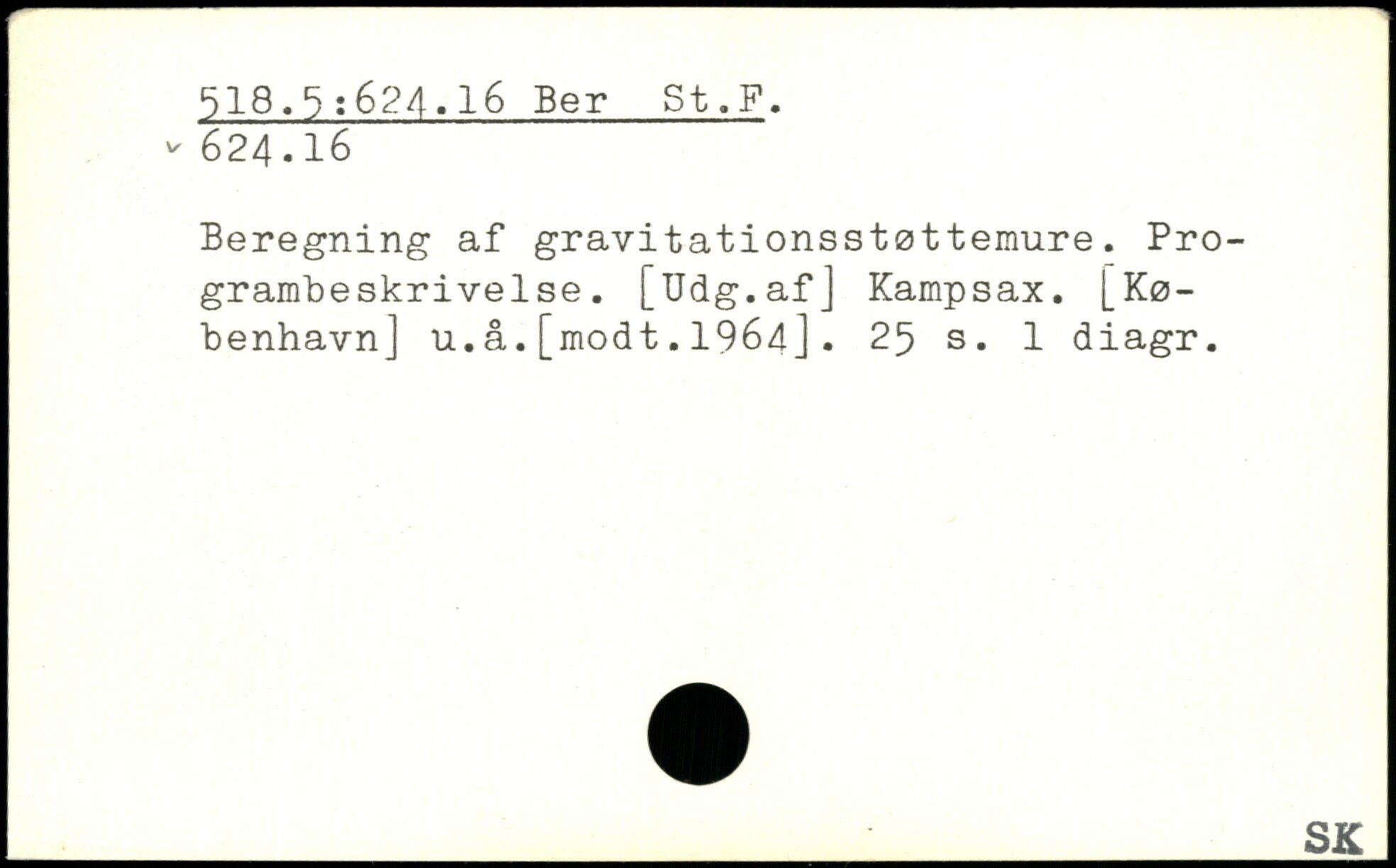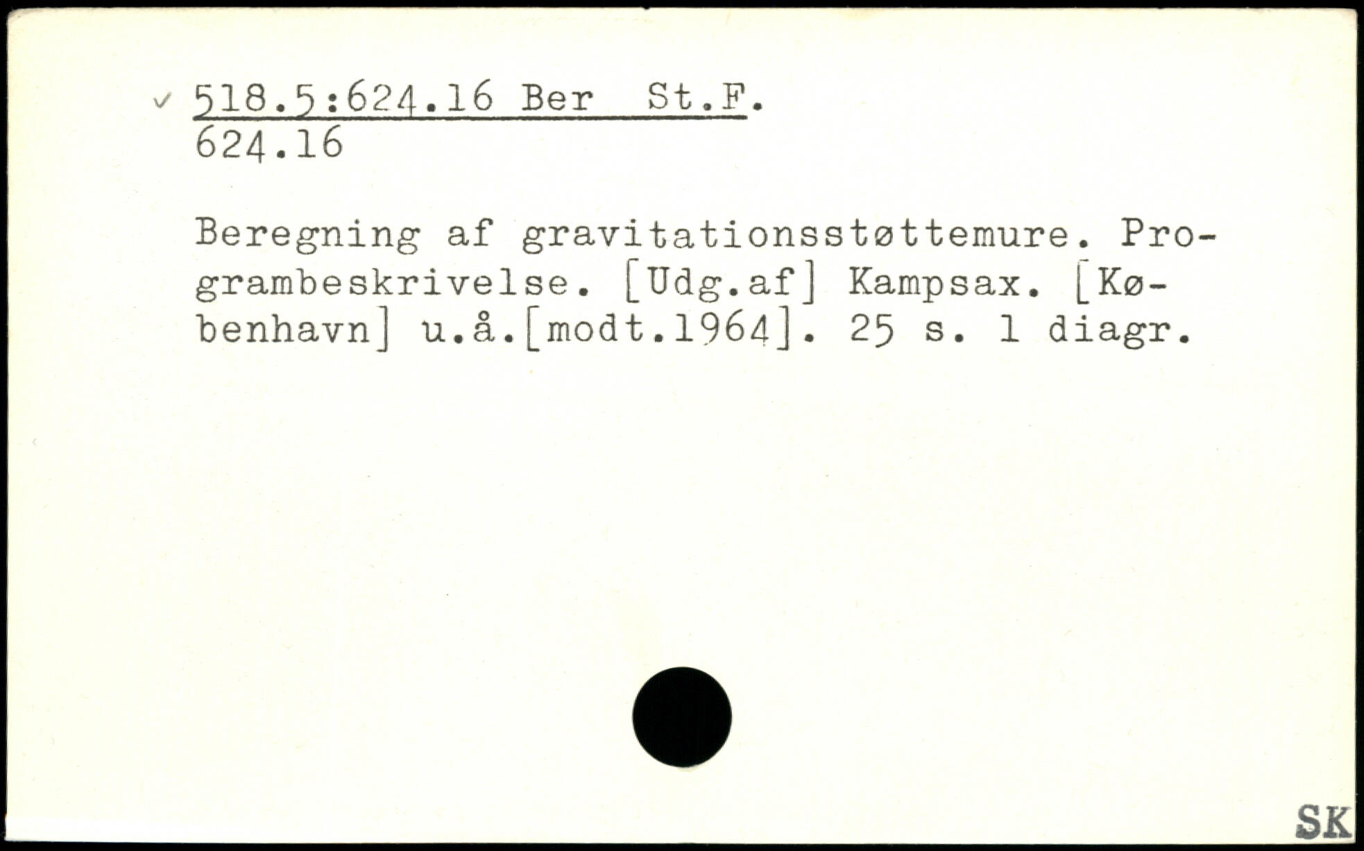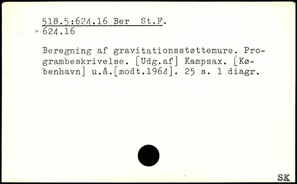 Beregning af gravitationsstøttemure. Programbeskrivelse. [Udg.afJ Kampsax. [København] u.å.[modt.1964].