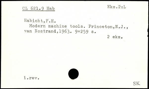 Modern machine tools. Princeton,N.J., van Hostrand,1963.