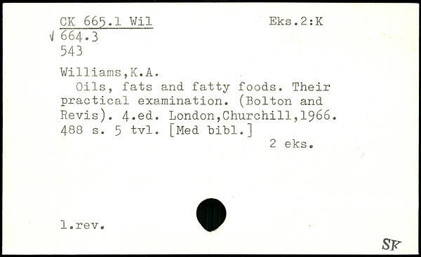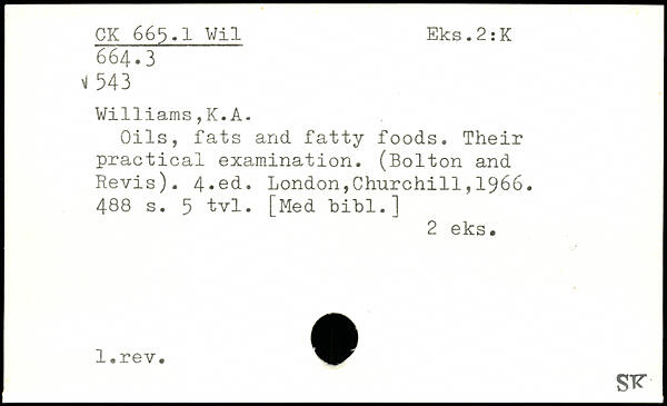 Oils, fats and fatty foods. Their practical examination. (Bolton and Revis).