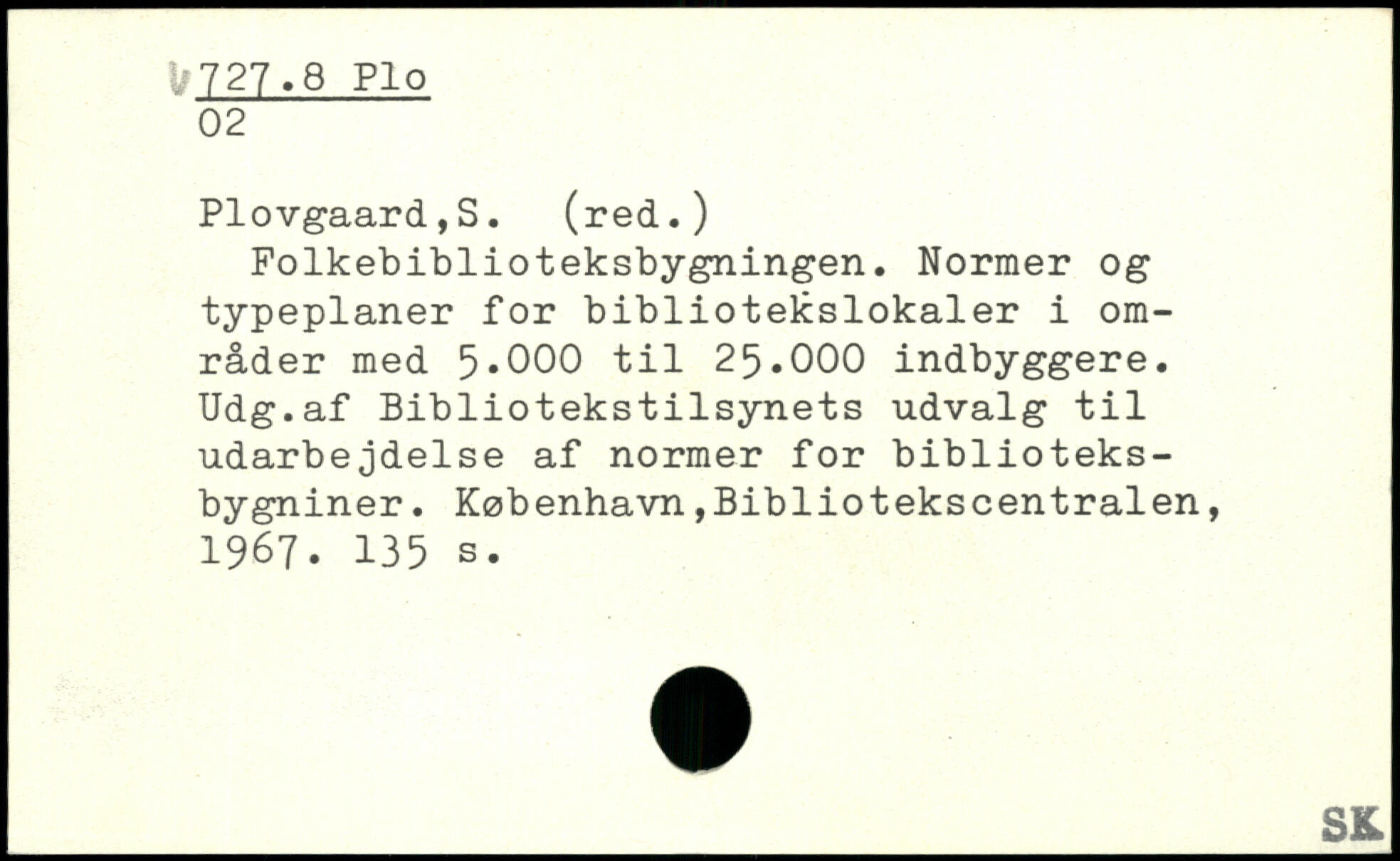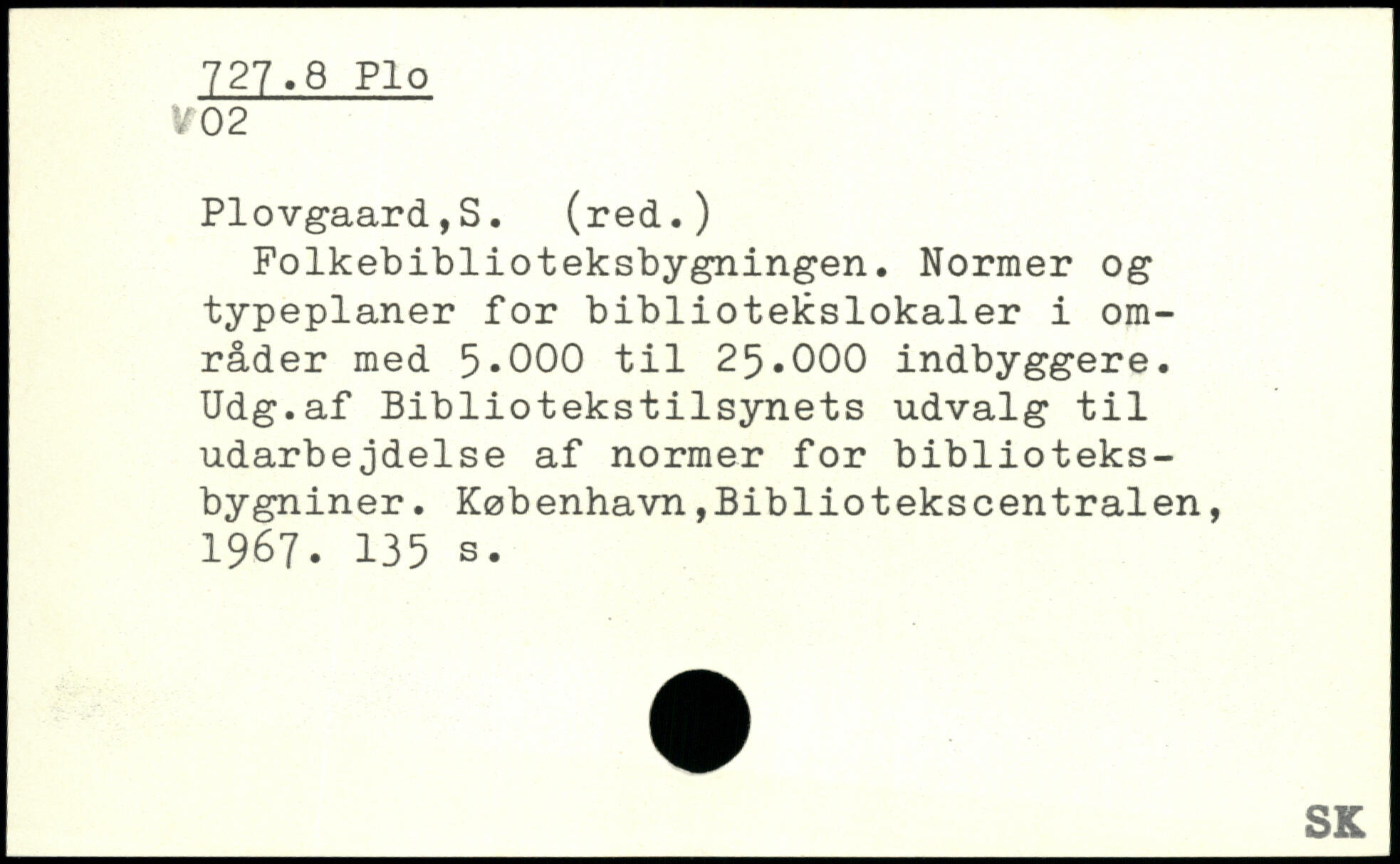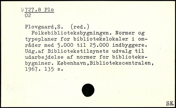 Folkebiblioteksbygningen. Normer og typeplaner for bibliotekslokaler i områder med 5.000 til 25.000 indbyggere. Udg.af Bibliotekstilsynets udvalg til udarbejdelse af normer for biblioteks-bygniner.