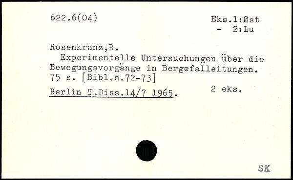 Experimentelle Untersuchungen über die Bewegungsvorgänge in Bergefalleitungen.