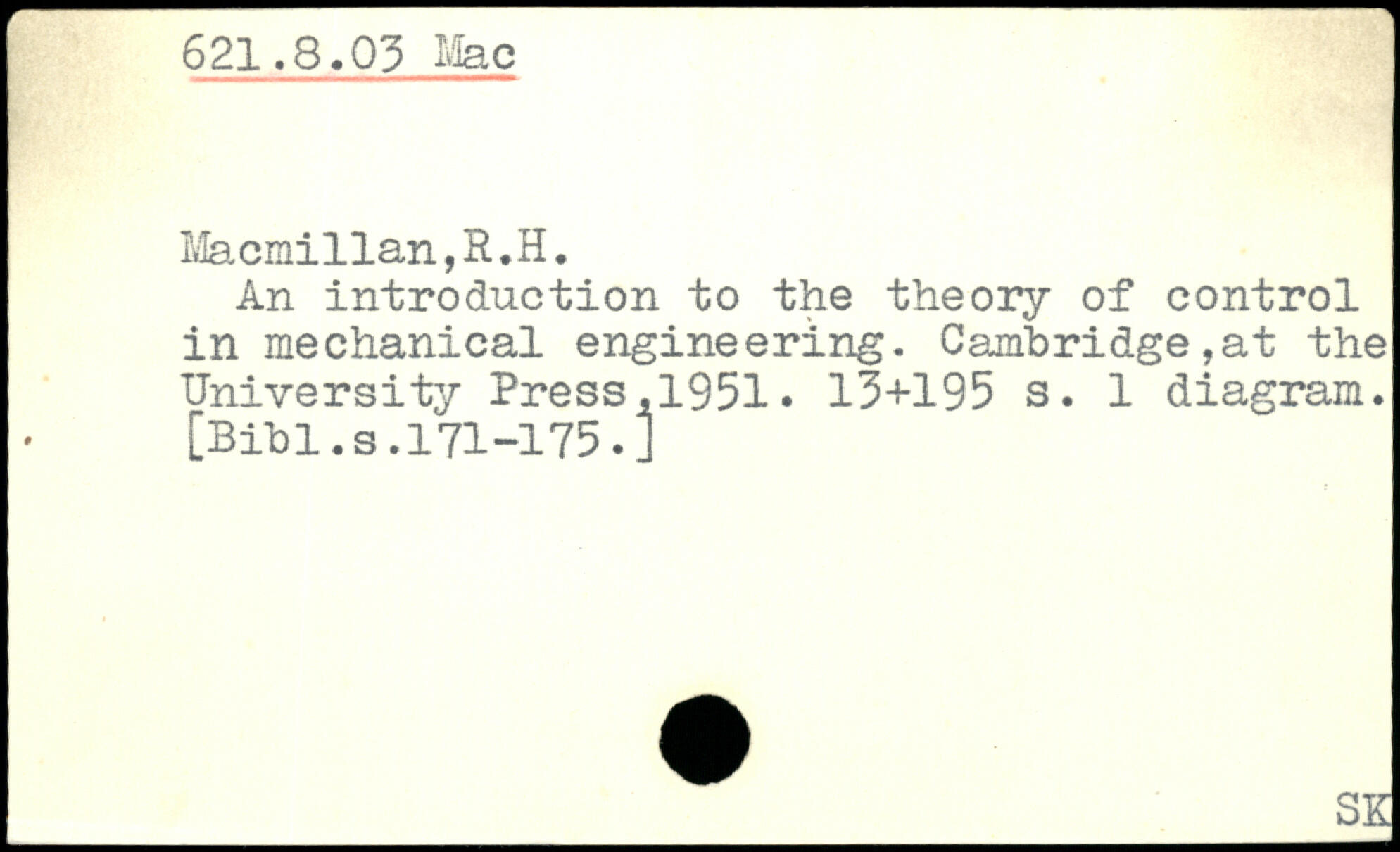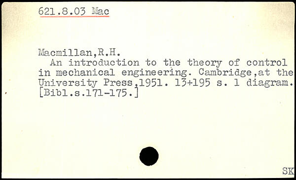 An introduction to the theory of control in mechanical engineering. Cambridge,at the University Press,1951.