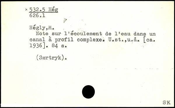 Note sur l'écoulement de l'eau dans un canal à profil complexe. U.st0,u,â, [ca. 1936].