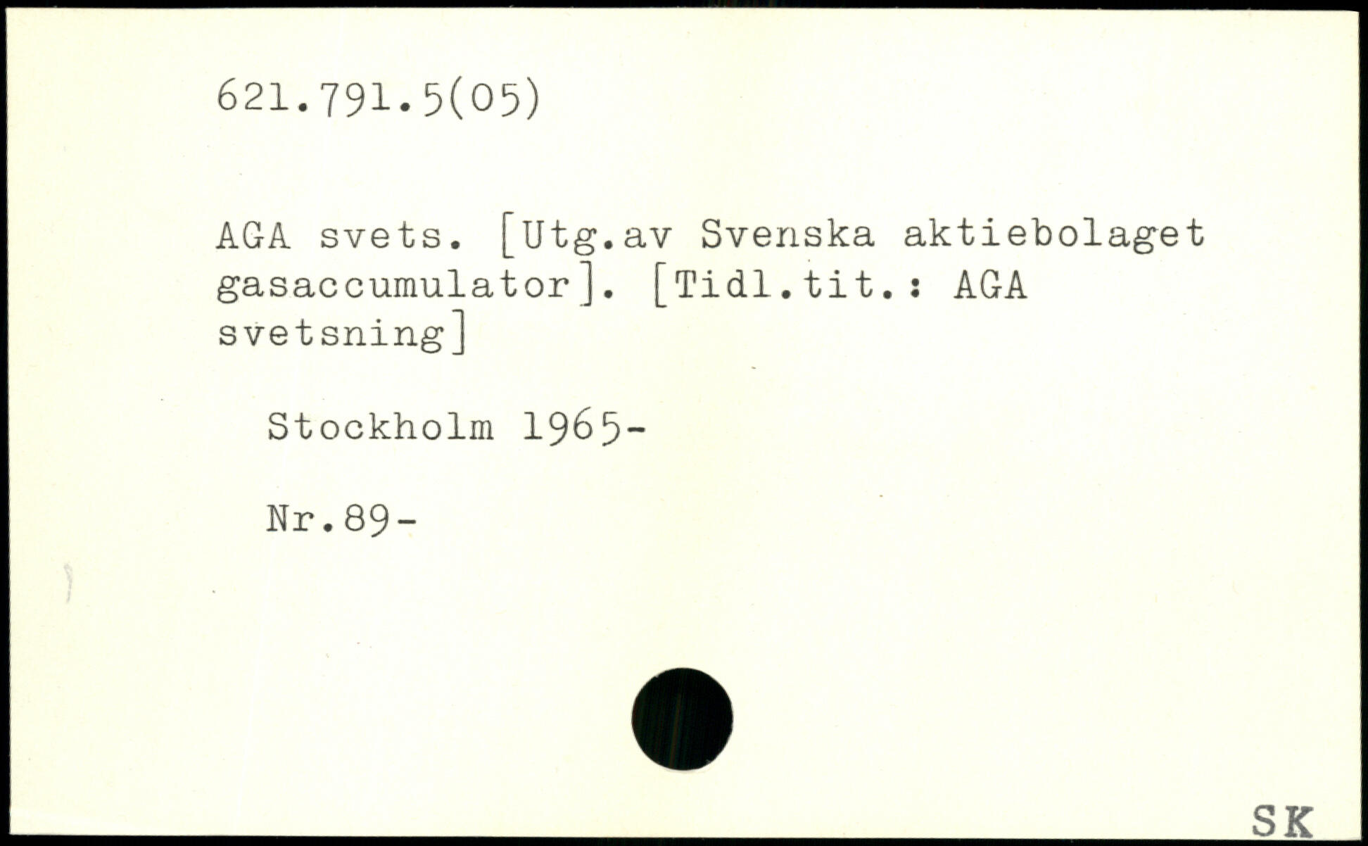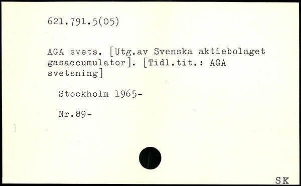 AGA svets. [Utg.av Svenska aktiebolaget gasaccumulator]. [Tidl.tit.: AGA svetsning]