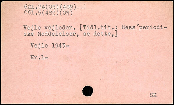 Vejle vejleder. [Tidl.tit.: Hess'periodiske Meddelelser, se dette,] Vejle 1943- Nr.l- W SK