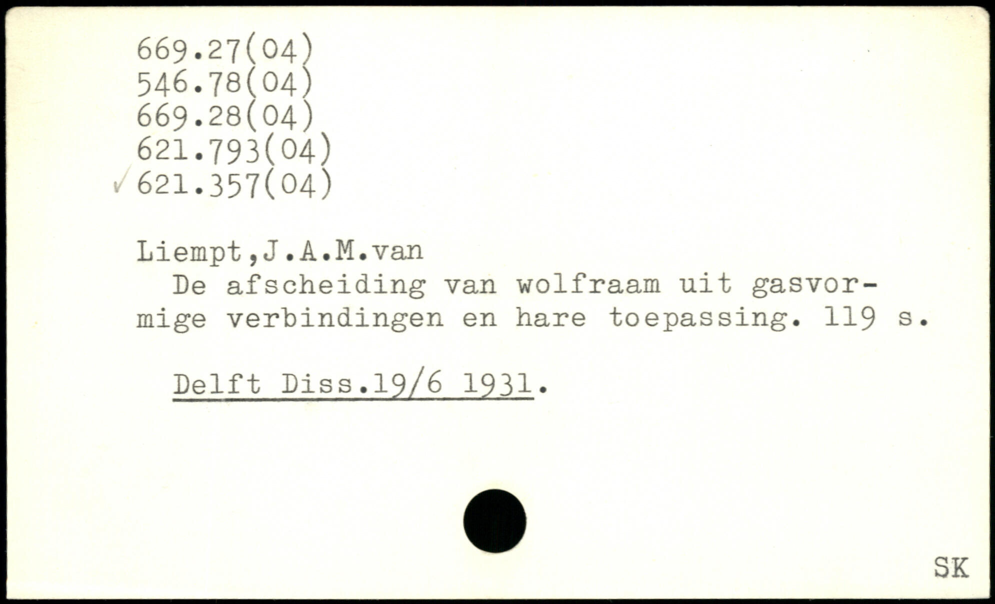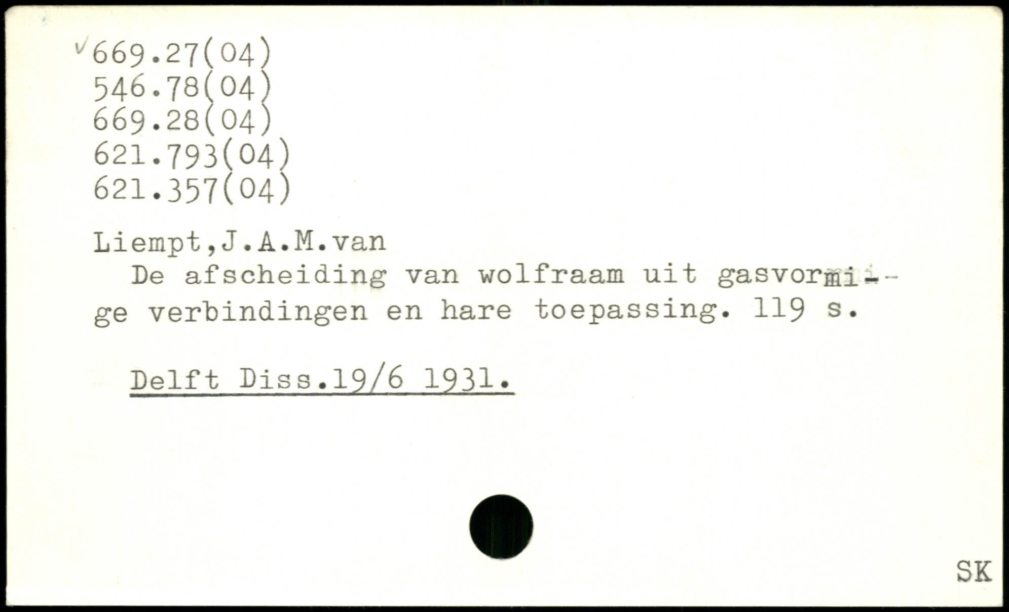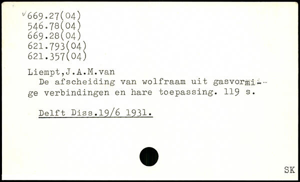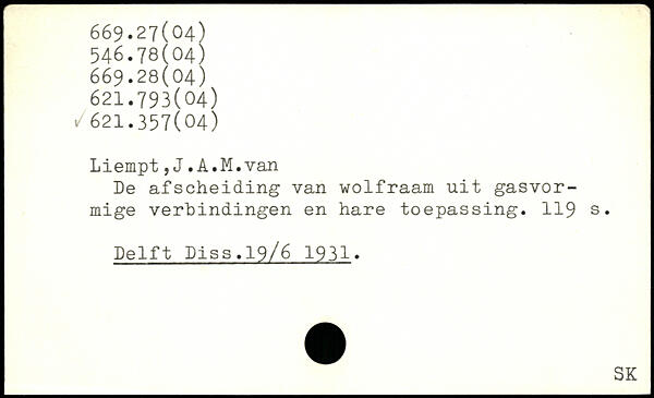 De afscheiding van wolfraam uit gasvor-mige verbindingen en hare toepassing.