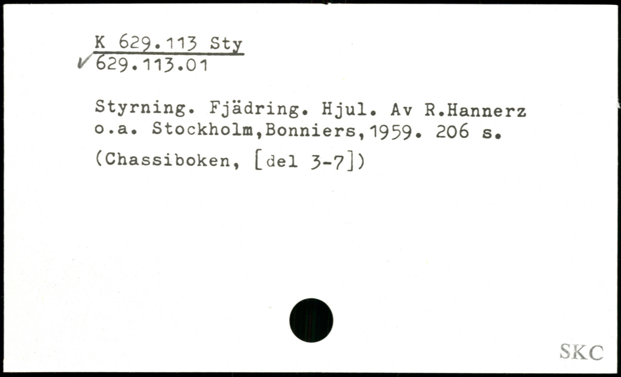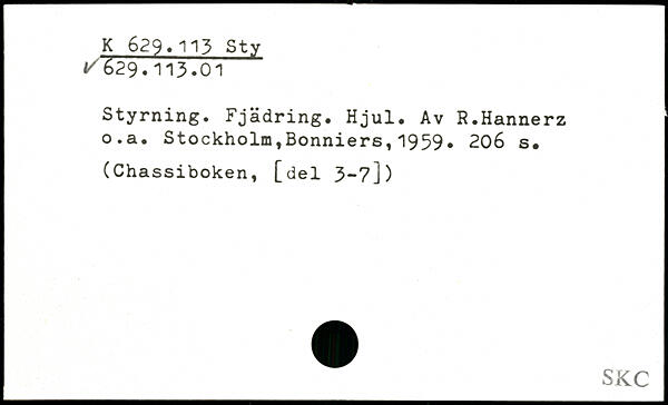 Styrning. Fjädring. Hjul. Av R.Hannerz o.a.