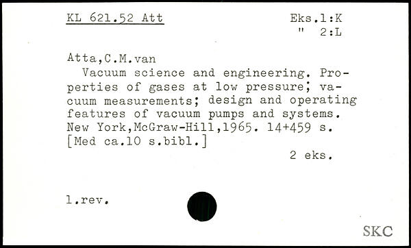 Vacuum science and engineering. Properties of gases at low pressure\ vacuum measurements; design and operating features of vacuum pumps and systems.