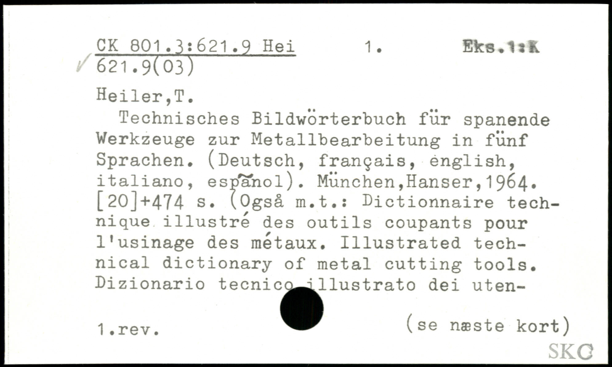 Technisches Bildwörterbuch für spanende Werkzeuge zur Metallbearbeitung in fünf Sprachen. (Deutsch, français, english, italiano, esbahol).