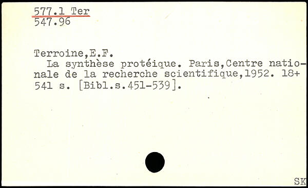 îerroine,E.E. La synthèse protéique. Paris,Centre nationale de la recherche scientifique,1952. 18+