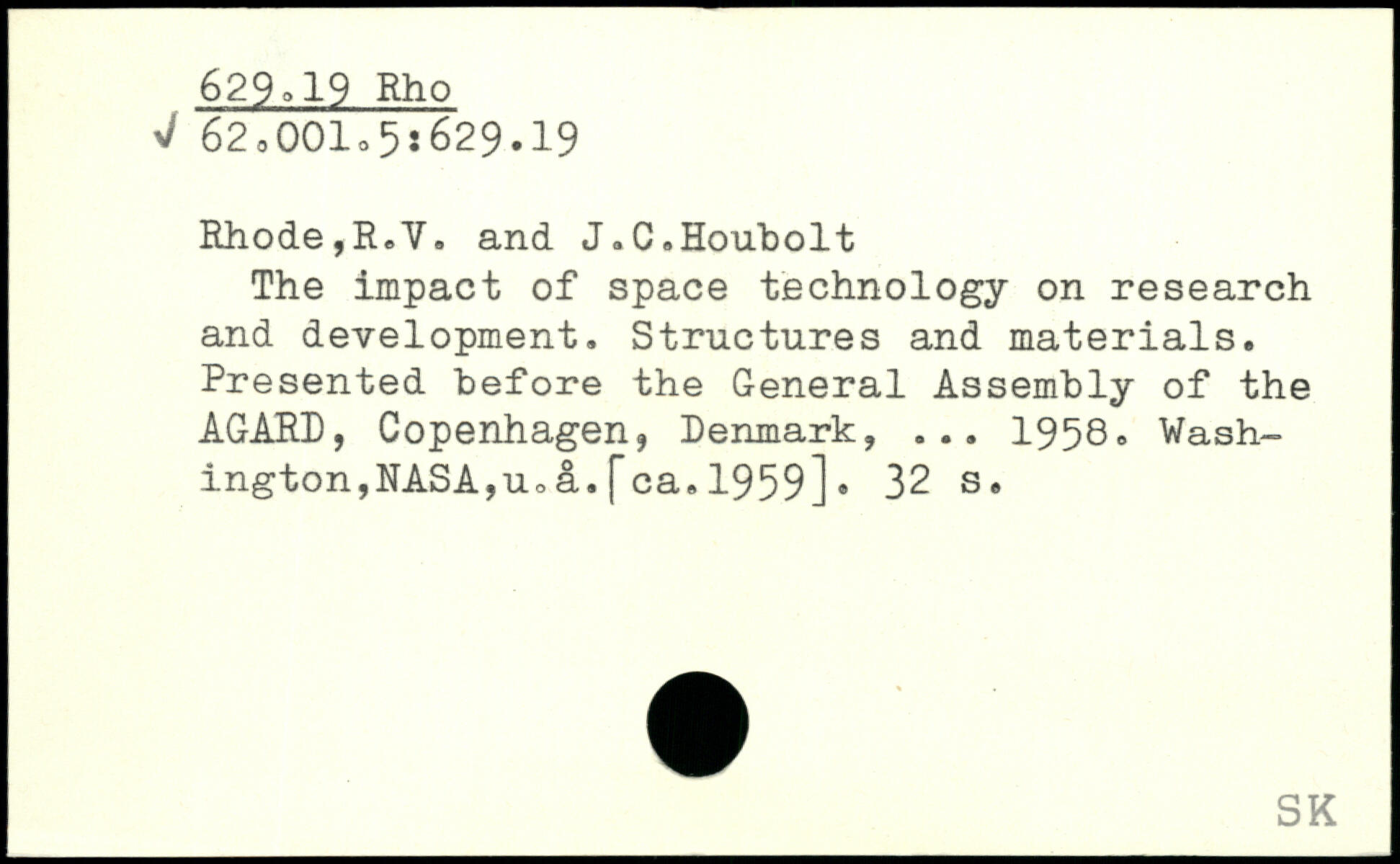The impact of space technology on research and development. Structures and materials. Presented before the General Assembly of the AGARD, Copenhagen, Denmark, ... 1958. Washington, NASA,u.a.[ca.1959].